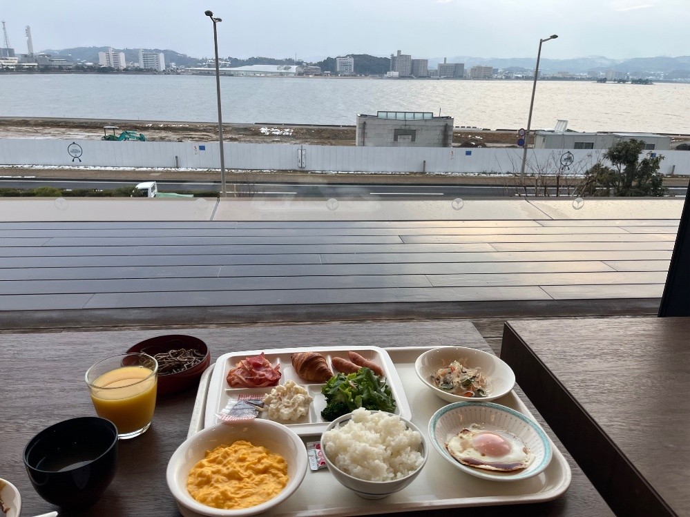 ホテルの朝食は宍道湖を眺めながら食べました!優雅な朝でしたよ~!